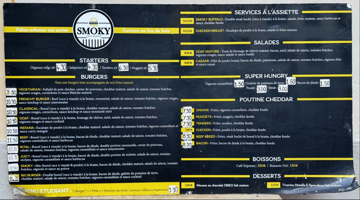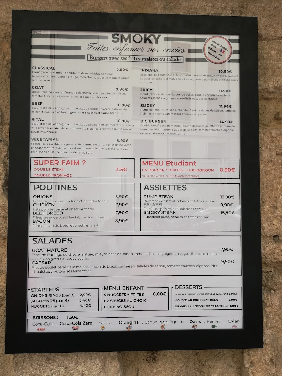 Guests rave about the enticing flavors and textures, with one review highlighting a burger experience that’s hard to match. The crispy fries and standout poutine add to the memorable meal, ensuring every bite is remarkable. With competitive pricing—less than 10€ for a complete meal—this joint promises not just value, but an engaging atmosphere with friendly staff. SMOKY GRILL BURGER is truly a must-visit destination for burger lovers in France.